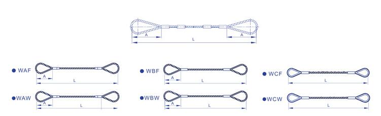 | 产品型号 | 钢丝绳直径 (mm) | 额定载荷 | 近似套长 A (mm) | ||||||
