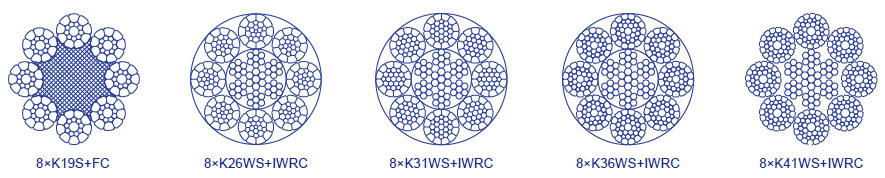 绳结构:8×K19S 8×K26WS 8×K31WS 8×K36WS 8×K41WS
