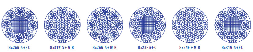 • 绳结构:8×25Fi+FC 8×25Fi+IWR 8×31WS+FC  8×31WS+IWR 8x26WS+FC 8x26WS+IWR