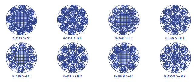绳结构:8x55SWS+FC 8x55SWS+IWR 8×36WS+FC 8×36WS+IWR 8×41WS+FC 8×41WS+IWR 8×49SWS+FC 8×49SWS+IWR